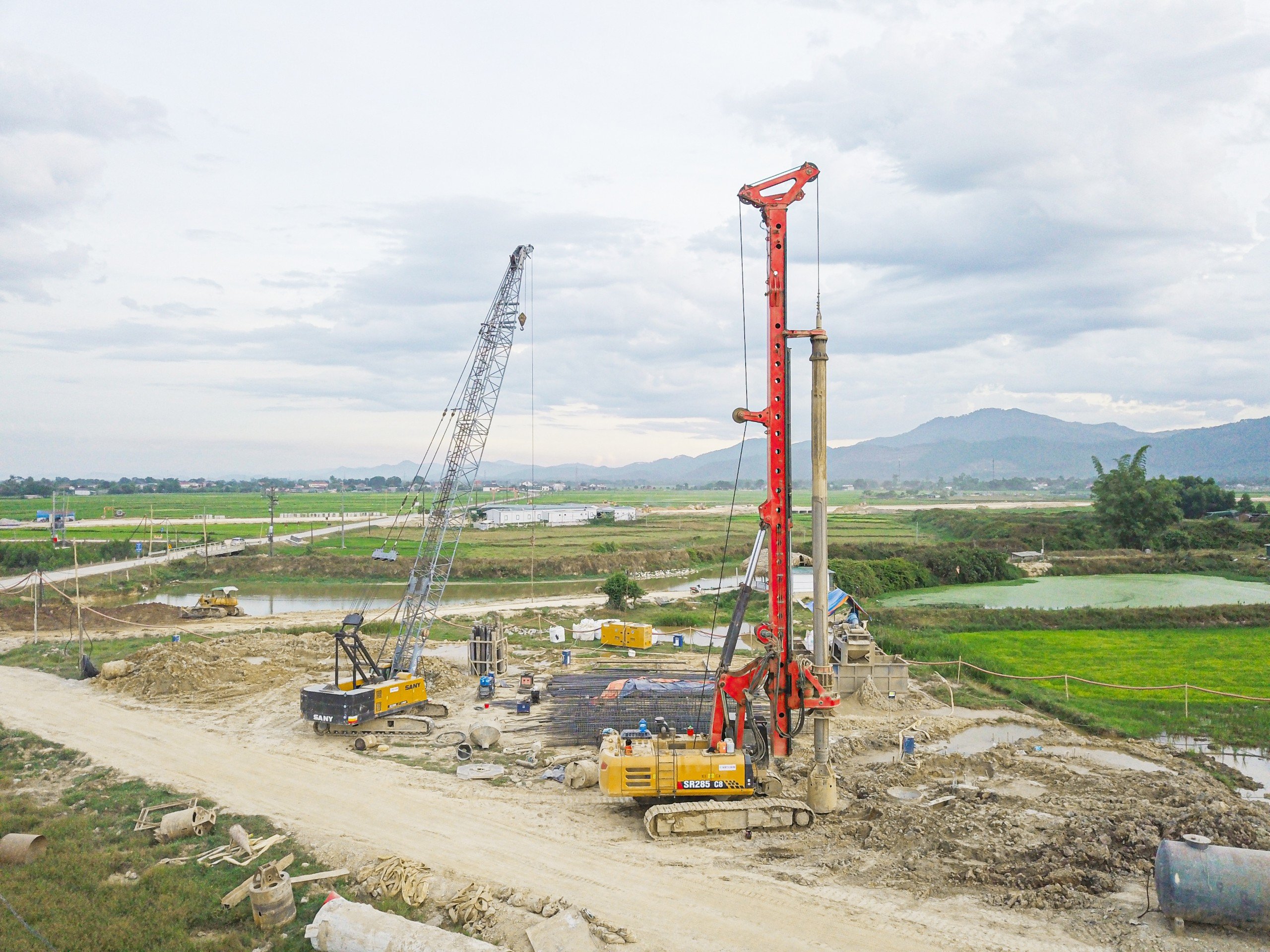 Thiết bị: Máy khoan cọc nhồi SANY SR285R, Cẩu bánh xích SANY SCC550A