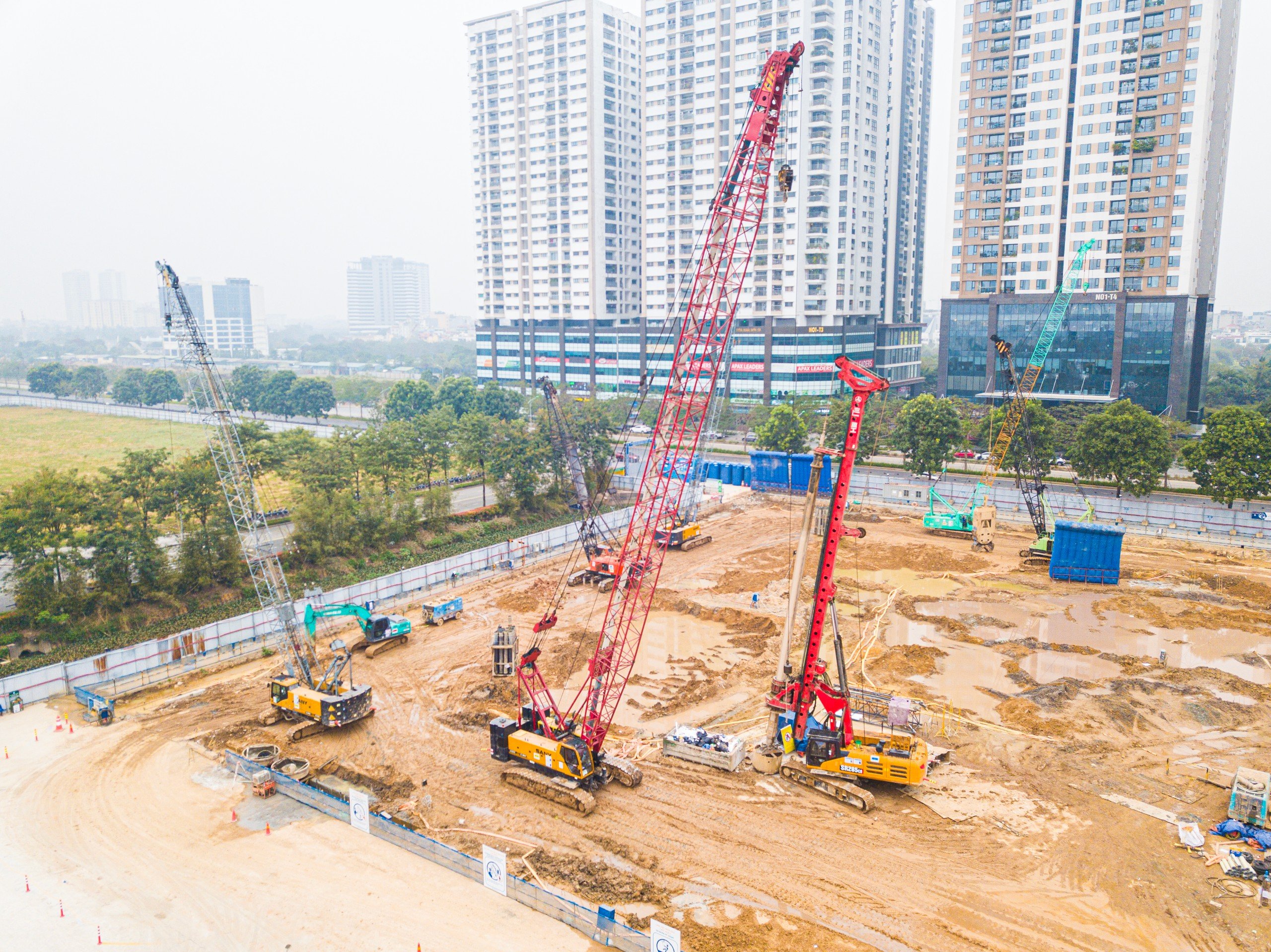 Thiết bị: Máy khoan cọc nhồi SANY (SR200, SR235, SR285R), Cẩu bánh xích SANY SCC600A