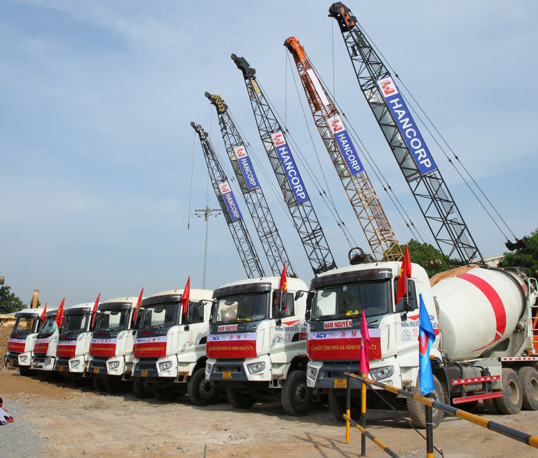 Các thiết bị tham gia thi công: Xe trộn bê tông, máy khoan cọc nhồi